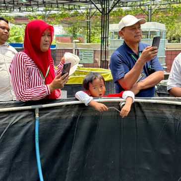 Peserta diajak melihat langsung sistem Bioflok, RAS, dan Akuaponik yang digabung menjadi satu ekosistem.
